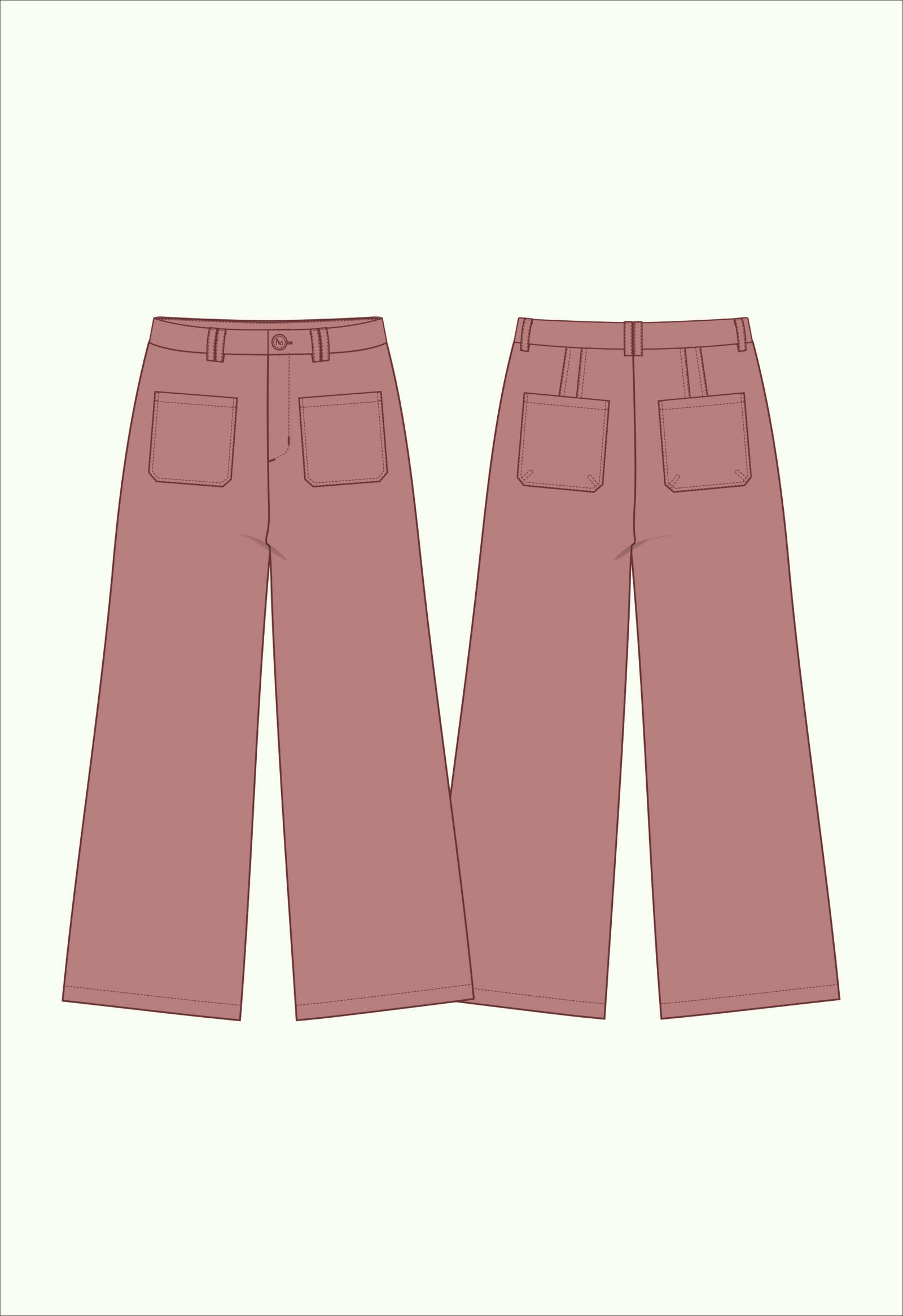 Pour tous les formats pour notre patron de pantalon, les pièces ne sont pas superposées et les marges de couture sont comprises.