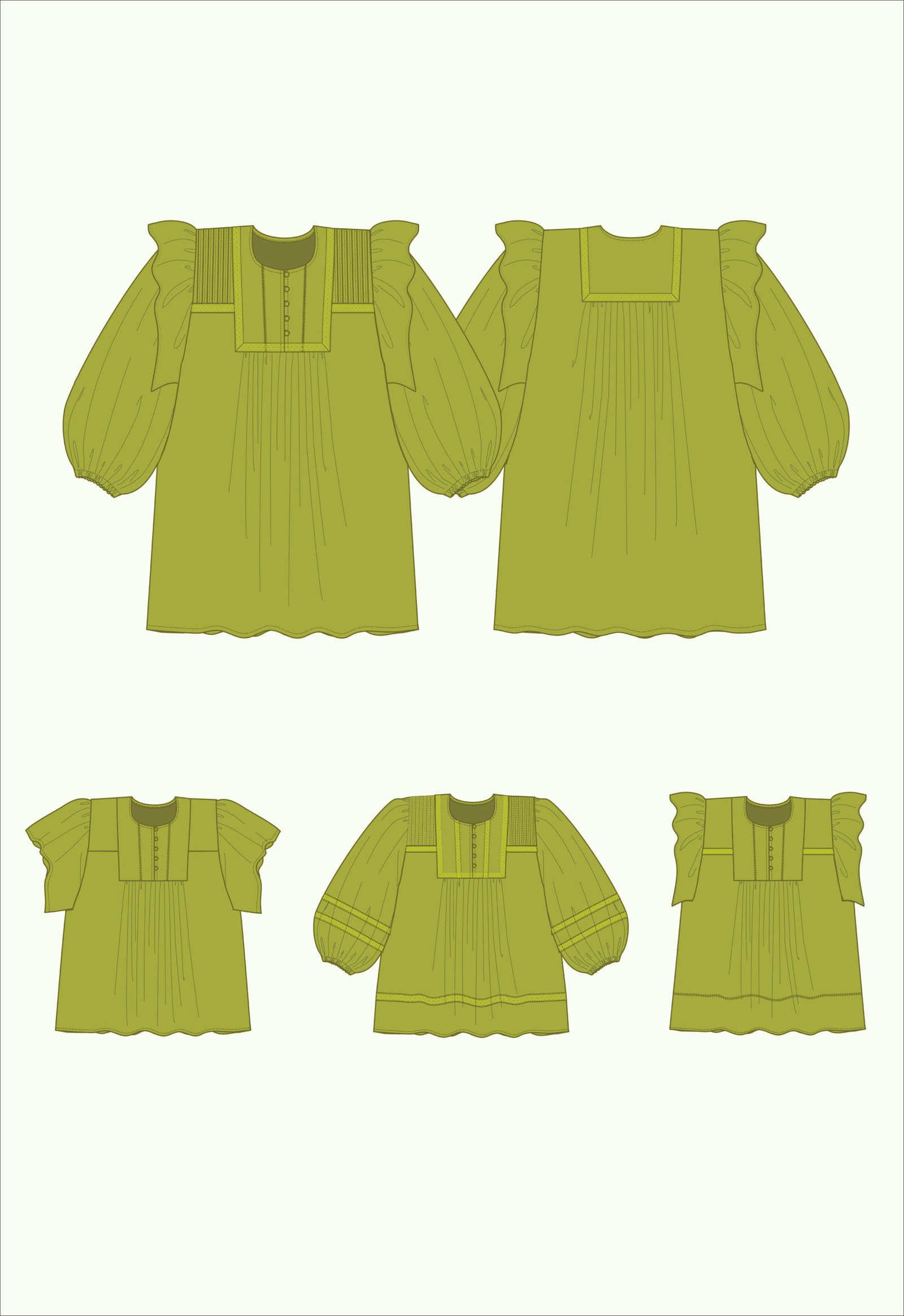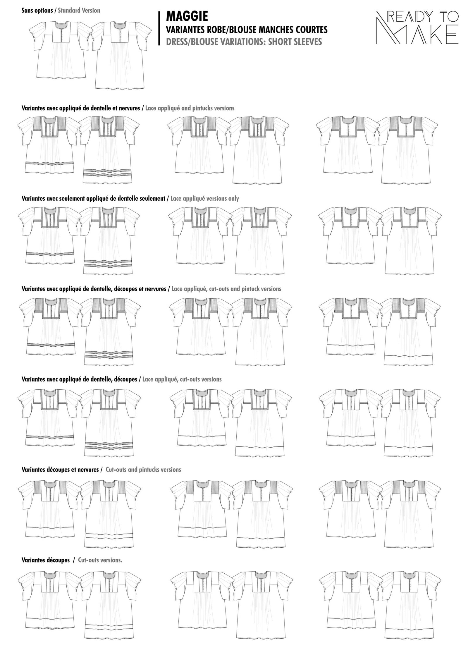 Maggie est une robe-blouse « baby-doll » inspirée par les icônes bohèmes et la douceur des années 70. Son plastron se pare de détails délicats et modulables (options dentelle et découpes), avec trois manches au choix, à composer selon vos envies pour une allure subtilement vintage, entre musique et poésie.