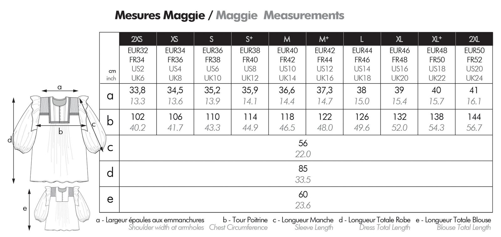 Mesures vêtement fini de notre patron robe/blouse Maggie :